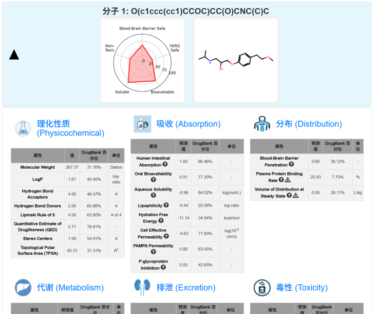 一个简单、快速且准确的平台,用于通过机器学习模型预测分子的吸收、分布、代谢、排泄和毒性特性。